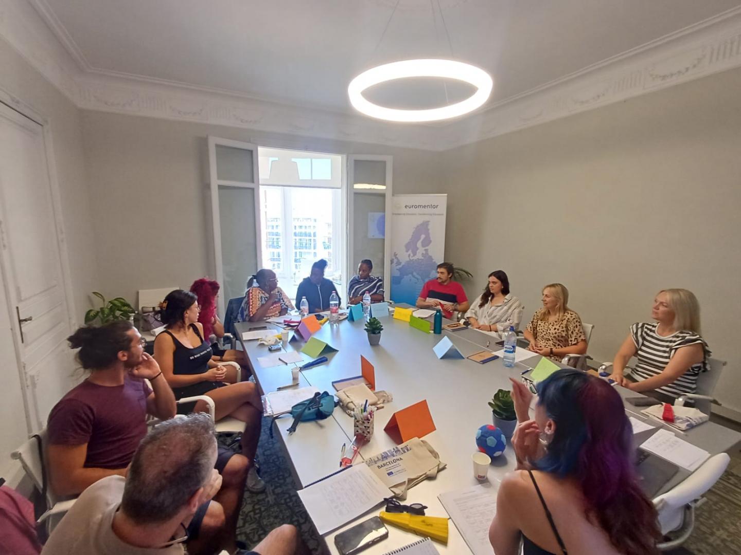 Session ERASMUS+ à Barcelone : Mme Ruth Bégarin avec des collègues européens lors d’une session collaborative.